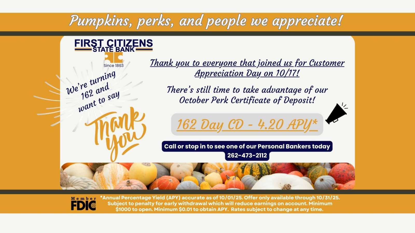about opening our October Perk Certificate of Deposit and start saving more today!